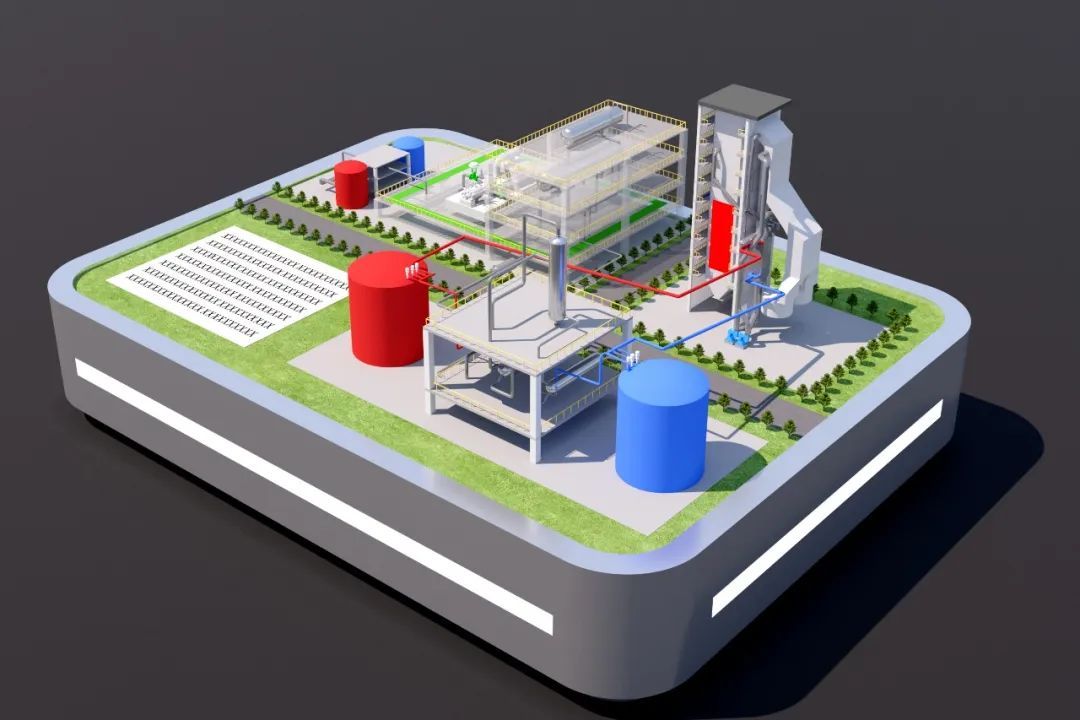 世界首臺(套)應用鍋爐耦合煙氣熔鹽儲能項目——國能廊坊熱電350兆瓦機組煙氣熔鹽儲能示范項目儲熱系統概念圖。