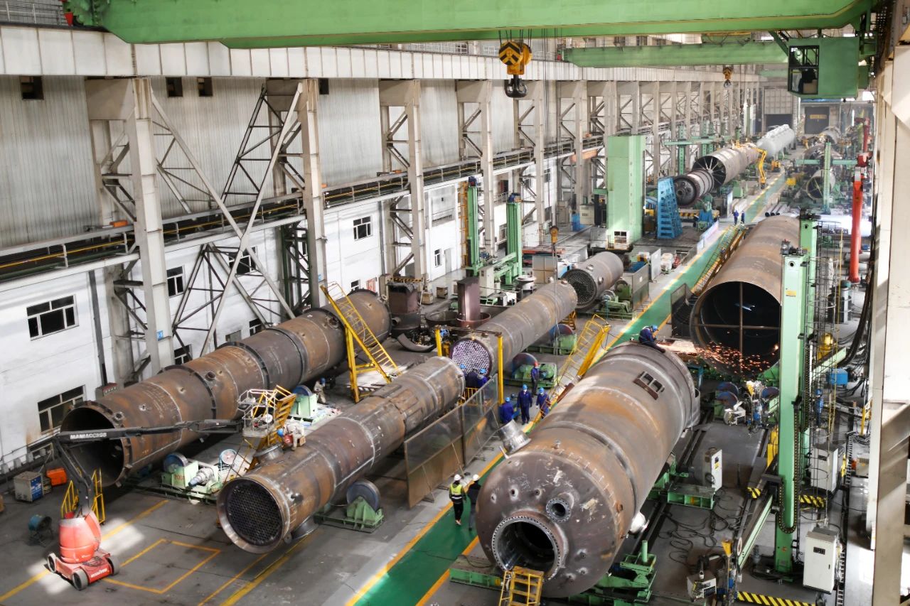 哈電集團鍋爐公司操作者正在進行氣化爐產品表面打磨處理