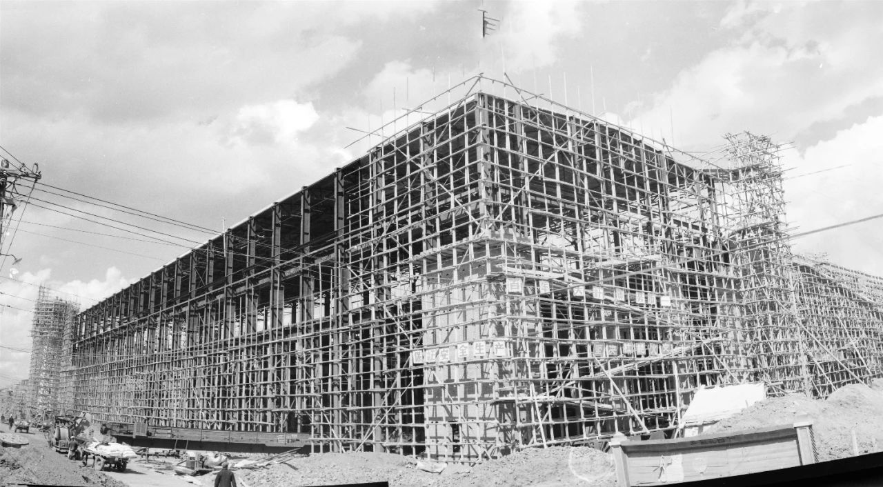1956年,建設過程中哈電集團汽輪機公司辦公樓及廠房