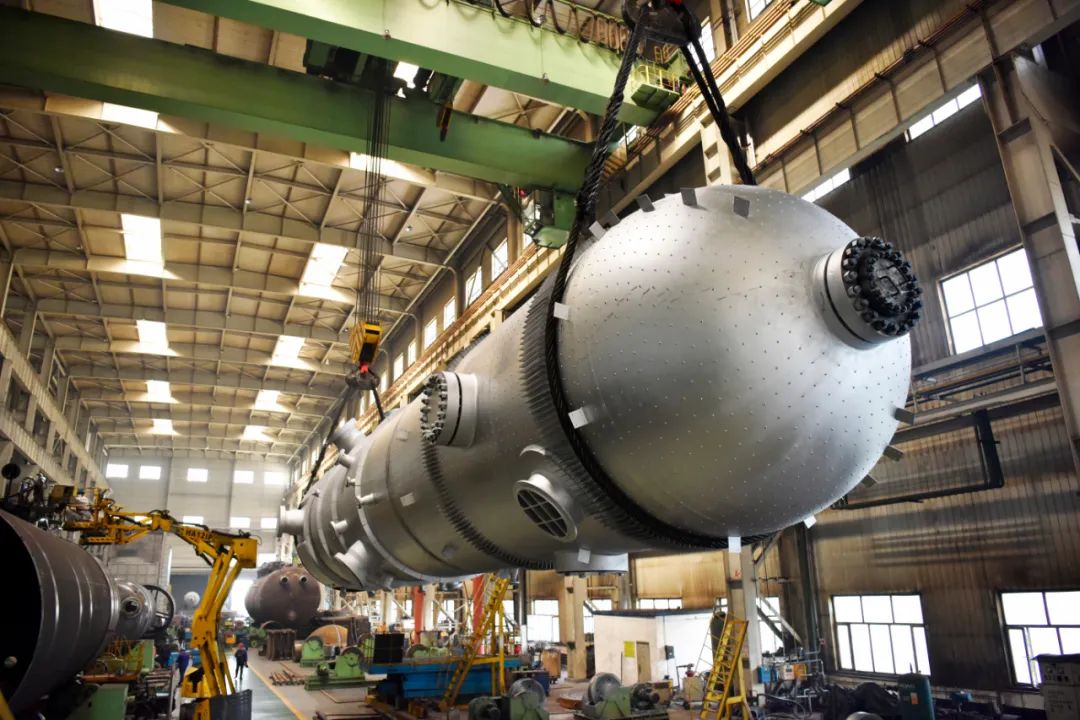鍋爐公司充分利用獨(dú)有的應(yīng)力分析設(shè)計(jì)資質(zhì),成功研制出日投煤量3000噸神華榆林CTC-1水煤漿氣化爐及日投煤量3300噸內(nèi)蒙古匯能煤化二期四噴嘴水煤漿氣化爐,連續(xù)刷新日投煤量世界紀(jì)錄,推動(dòng)煤炭資源清潔利用。成功研制出國產(chǎn)化首批神華榆林CTC-1項(xiàng)目兩臺(tái)戴維甲醇反應(yīng)器,更是打破了國外公司長期壟斷的局面。承制的盛虹煉化一體化項(xiàng)目輻射廢鍋、蒸汽過熱器采用煤碳清潔高效利用最為先進(jìn)的技術(shù)路線,其回收顯熱可帶來十分可觀的經(jīng)濟(jì)效益,具有廣闊的應(yīng)用前景。