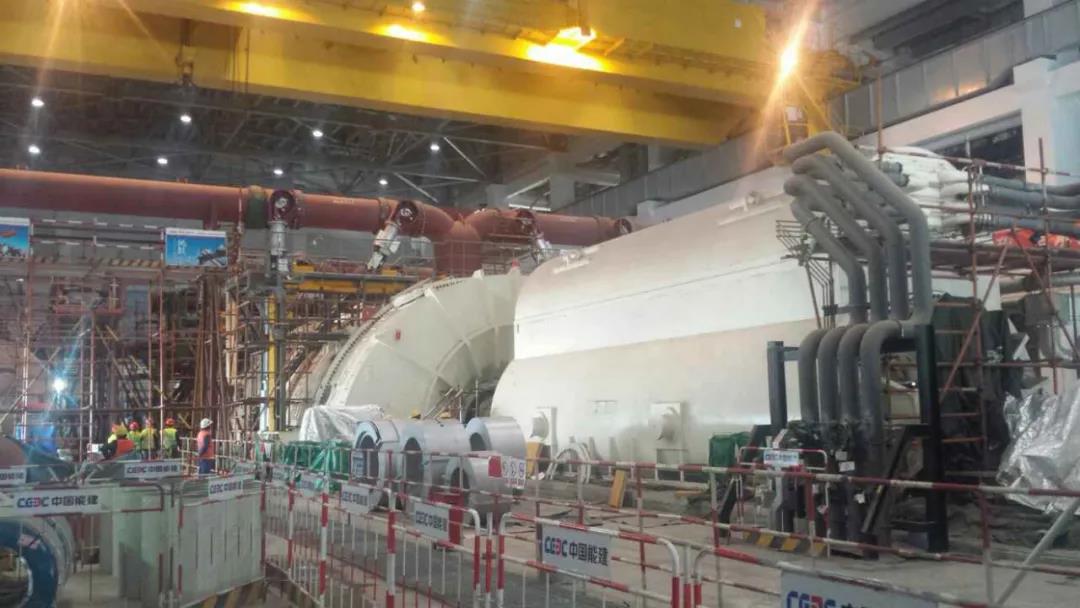 2019年,海陽核電70萬平方米供熱項目作為我國首個核能供熱商用工程投運,被國家能源局命名為“國家能源核能供熱商用示范工程”,獨立第三方評價其“清潔、安全、穩定、高效,具有大規模推廣應用價值”。在一期項目取得成功的基礎上,海陽核電又聯合哈電集團汽輪機公司積極探索更大規模、更高效率的供熱方案。此次核能綜合利用,汽輪機公司全程參與核心技術攻關,完成了堆機協調控制、熱電功率匹配設計,完成管道的詳細布置方案及管道應力計算,高壓缸力學分析、穩定性分析,葉片安全性分析和控制系統改造等工作,設計完成方案具有安全性高、成本低、改造周期短、邏輯控制簡單、管道布置最優化等優勢特點。為確保該工程建設和運行中,汽輪發電機設備的安全高效,電機公司根據業主需求,對設備進行了運行維護。