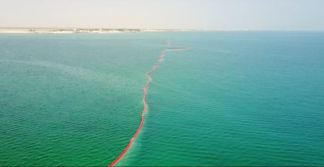 為了確保施工區(qū)周邊的珊瑚、水草群落不會(huì)受到疏浚海底絞吸作業(yè)和沉淀池排水所潛在的不利影響,為了保護(hù)這塊海洋動(dòng)植物的圣地,哈電集團(tuán)聯(lián)合國(guó)際知名咨詢(xún)公司的環(huán)境專(zhuān)家,經(jīng)過(guò)反復(fù)研究論證,確定了保護(hù)水質(zhì)的最佳方案——“防淤簾防污方案”,構(gòu)筑起橙紅色“防污染警戒線”。