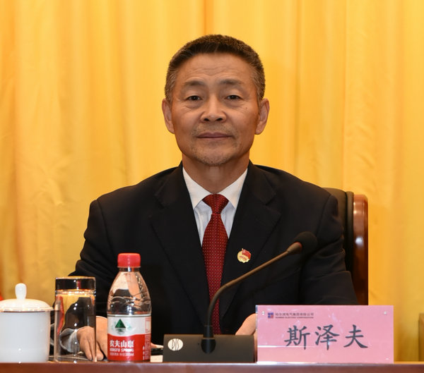 哈電集團(tuán)黨委書記、董事長(zhǎng)斯?jié)煞虺鱿瘯?huì)議