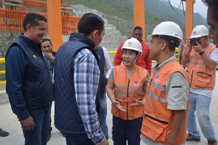 厄瓜多爾政府官員、公企協(xié)調(diào)公司主席 Edisson Garzón先生于2018年1月12日13時(shí)在CELEC公司總經(jīng)理Francisco Vergara先生、CELEC胡邦公司經(jīng)理 Fabricio Zambrano先生陪同下,出席了業(yè)主方舉辦的美納斯水電項(xiàng)目大壩蓄水儀式并發(fā)表講話,還到美納斯水電項(xiàng)目現(xiàn)場(chǎng)參觀考察。