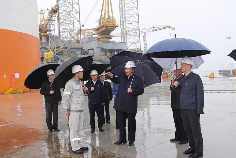 6月13日下午,習近平冒雨來到中集來福士海洋工程有限公司煙臺基地。“藍鯨1號”鉆井平臺巍峨佇立、“泰山”龍門吊高聳入云,習近平撐著傘邊走邊看,詳細了解企業走自主創新發展之路、開展高端海洋工程設備自主設計研發制造情況。聽說“藍鯨1號”去年創造了可燃冰開采時間和產量兩項世界紀錄,習近平鼓勵他們繼續努力。總書記同現場的工人們一一握手,他說,基礎的、核心的東西是討不來買不來的,要靠我們自力更生、自主創新來實現。我看你們有這個信心,希望你們迎難而上、再接再厲。(記者 張曉松、謝環馳)