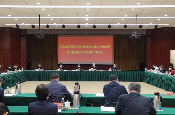 會議強調,要把學習宣傳貫徹黨的十九屆六中全會精神作為當前和今后一個時期的重大政治任務,切實提高政治站位,以高度的政治自覺切實抓實抓好全會精神的學習宣傳貫徹落實;要充分認識學習貫徹全會精神是深化拓展黨史學習教育的重要部署,引導廣大黨員干部自覺把思想和行動統一到全會精神上來;要充分認識學習貫徹全會精神是推進國資央企高質量發展的必然要求,進一步學習好、宣傳好、貫徹好全會精神,用全會精神來統一思想、統一意志、統一行動,更好推進國資央企高質量發展;要強化工作舉措,加強宣傳闡釋,高質量開展學習研討,扎實做好黨史學習教育“下半篇文章”。