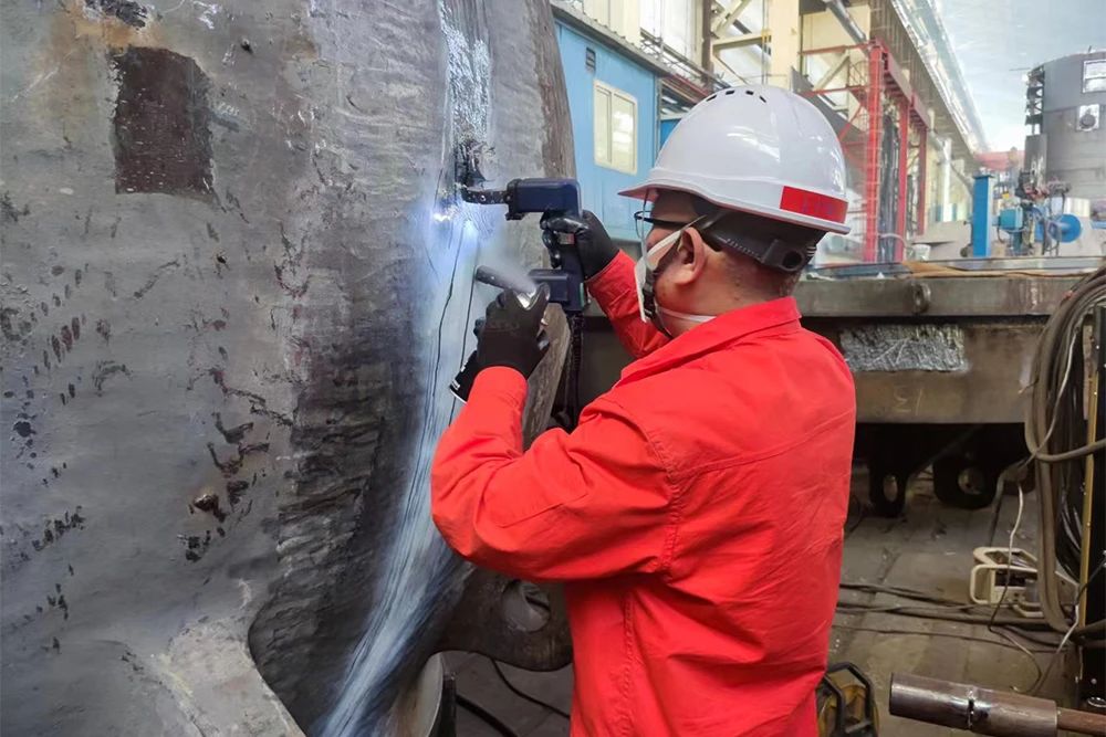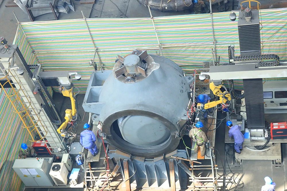 10月29日,采用雙機(jī)器人工作站全自動(dòng)化焊接的縉云抽水蓄能電站6號(hào)機(jī)球閥閥體,在焊縫焊后無(wú)損探傷一次合格的基礎(chǔ)上,退火后無(wú)損探傷再次“零缺陷”通過(guò)驗(yàn)收,實(shí)現(xiàn)了“自動(dòng)化焊接全過(guò)程零返修”的既定目標(biāo),標(biāo)志著電機(jī)公司在大型結(jié)構(gòu)件焊接自動(dòng)化生產(chǎn)領(lǐng)域取得了重大突破。