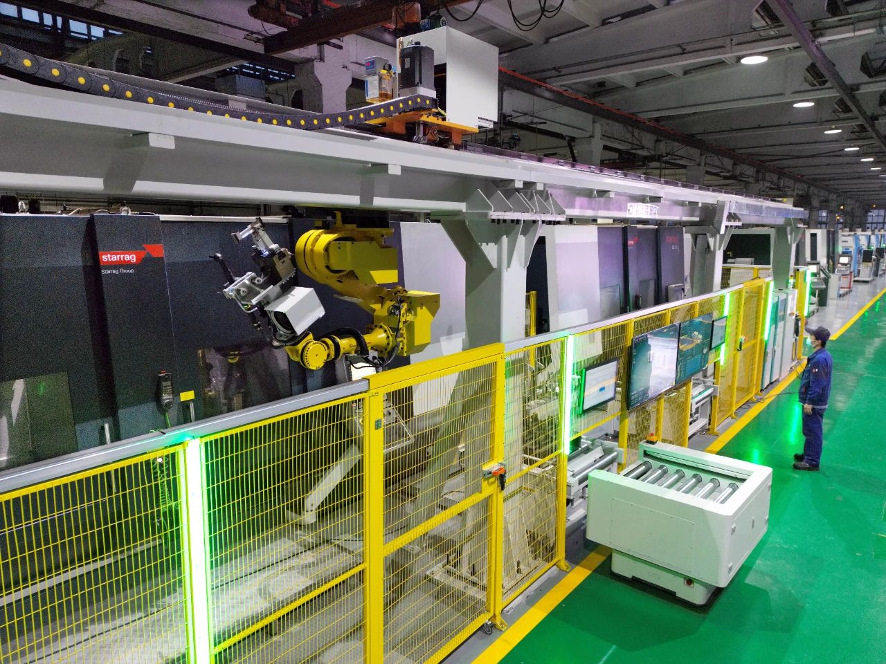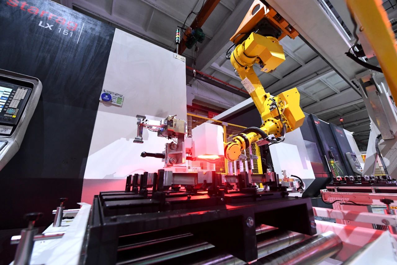 此次上線的示范單元以小五軸綜合加工中心為主體,集成工業機器人、AGV、5G傳輸、在線測量、柔性預調定位、機器視覺等先進數字裝備及數字技術,運用了加工級數字孿生、智慧倉儲物流、柔性過程管控、自動化決策分析等多個智慧單元,全面驗證了公司葉片全序全流程自動化加工產線的關鍵核心技術。