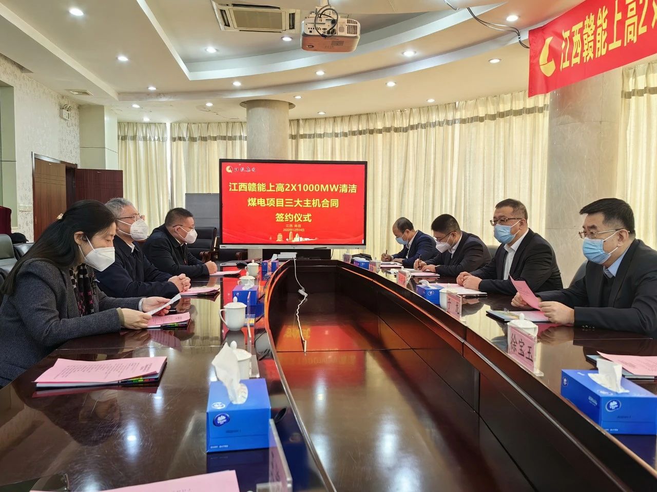 當日,該項目三大主機合同簽約儀式在江西省南昌市舉行,江西省投資集團有限公司黨委委員、副總經理胡若蘭,江西贛能股份有限公司黨委書記、董事長陳萬波,副總經理李根東,上高發電有限公司副總經理徐鵬、王碧輝,哈爾濱電氣股份有限公司副總裁、哈電汽輪機黨委書記、董事長邱希亮,哈爾濱電氣股份有限公司副總裁、哈電鍋爐黨委書記、董事長于龍,哈電電機副總經理李泰嶺,以及相關部門負責同志參加簽約儀式。
