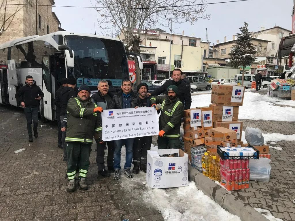 地震發(fā)生后,哈電集團國際公司土耳其伊斯坦布爾商務代表處聯(lián)合土耳其紙板廠項目部、澤塔斯運維項目部,克服地震帶來的不利影響,積極統(tǒng)籌各方資源,為抵達伊斯坦布爾的中國藍天救援隊準備了通勤巴士和必要物資,同時各項目部員工積極為當?shù)貫拿衲技镔Y并提供幫助。
