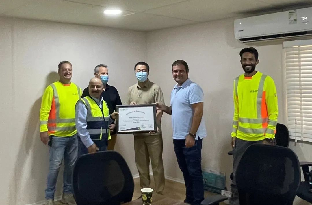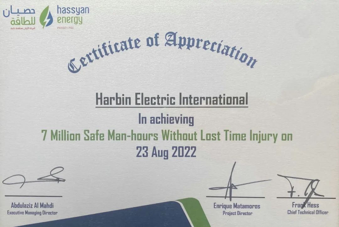 近日,哈電集團(tuán)國際公司承建的迪拜哈斯彥電站項(xiàng)目現(xiàn)場(chǎng)施工實(shí)現(xiàn)700萬安全人工時(shí)的安全績效。哈斯彥項(xiàng)目執(zhí)行經(jīng)理Mohammad Abunayyan為哈電國際哈斯彥項(xiàng)目部頒發(fā)了安全管理榮譽(yù)證書。