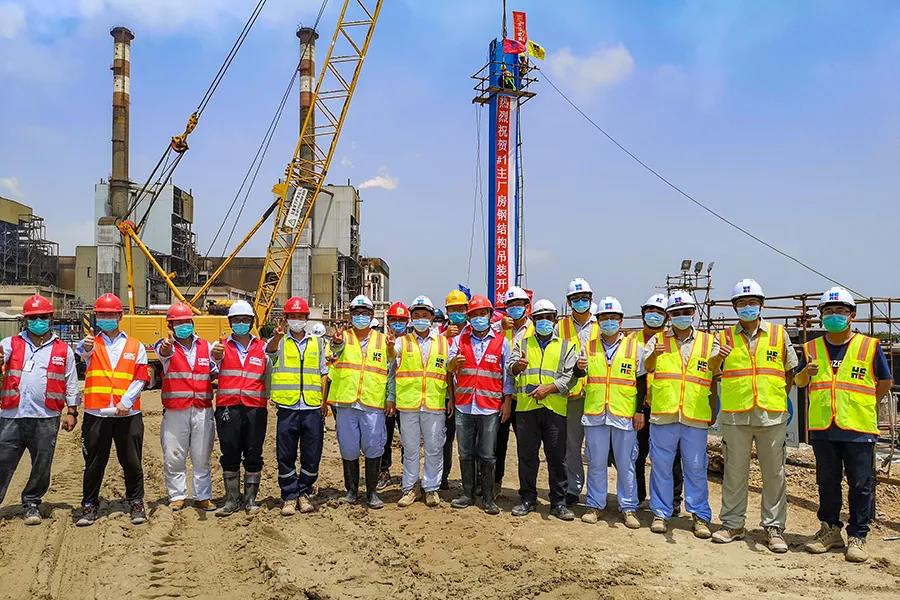 巴基斯坦當地時間8月29日11時18分,哈電集團國際公司承建的濱佳勝三期900MW聯合循環電站項目主廠房第一根鋼結構,也是全場第一根鋼結構吊裝順利完成,標志著濱佳勝三期項目正式進入安裝工程施工階段。
