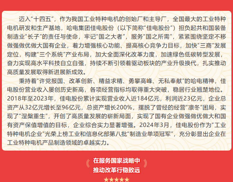佳電股份:聚焦全面深化改革 踐行綠色低碳轉型 加快培育發展新質生產力