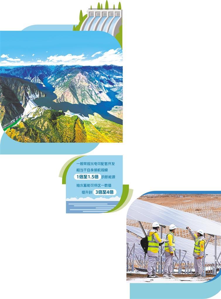 水電像一根強有力的杠桿,撬動更多的新能源開發(fā)。“一般常規(guī)水電可配套開發(fā)相當(dāng)于自身裝機規(guī)模1倍至1.5倍的新能源,抽水蓄能可將這一數(shù)值提升到3倍至4倍。”國投集團雅礱江公司總經(jīng)理郭緒元說,雅礱江干流常規(guī)水電技術(shù)可開發(fā)容量約3000萬千瓦,水庫總庫容大,抽水蓄能站點眾多,調(diào)節(jié)性能優(yōu)異,流域光伏風(fēng)電資源豐富,可形成總規(guī)模超1億千瓦的水風(fēng)光互補綠色清潔可再生能源示范基地。