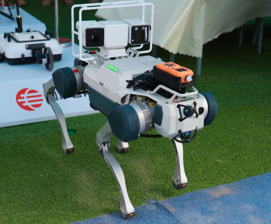 四足機(jī)器人與人形機(jī)器人則組成了“第一現(xiàn)場(chǎng)”的“先遣隊(duì)”。“四足機(jī)器人可以將40公斤物資馱在背上,仍能以20公里/小時(shí)的速度在各種地形間穿梭,實(shí)現(xiàn)設(shè)備物資短距離迅速搬運(yùn)。”工作人員表示,在搶險(xiǎn)現(xiàn)場(chǎng)如果存在可燃?xì)怏w或有毒有害氣體泄漏,還能通過(guò)多通道接口搭載氣體檢測(cè)、操作臂等輔助模塊,用四條仿生腿跨過(guò)各類障礙抵達(dá)“第一現(xiàn)場(chǎng)”進(jìn)行簡(jiǎn)單處置操作和數(shù)據(jù)回傳。
