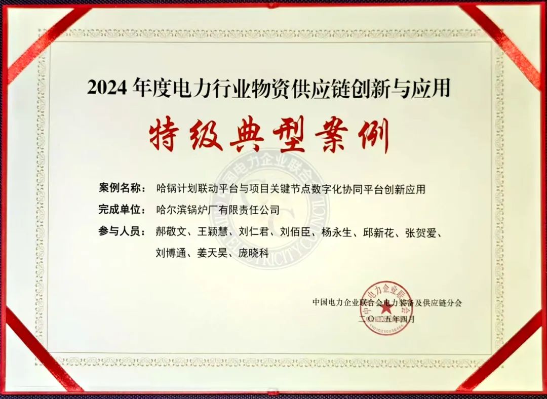 4月10日,2025年電力行業物資產供鏈創新轉型成果發布交流會在湖北省武漢市舉行。會議發布了“2024年度電力行業物資供應鏈創新與應用典型案例”名單,哈電鍋爐申報的“計劃聯動平臺與項目關鍵節點數字化協同平臺創新應用”項目獲評特級案例。