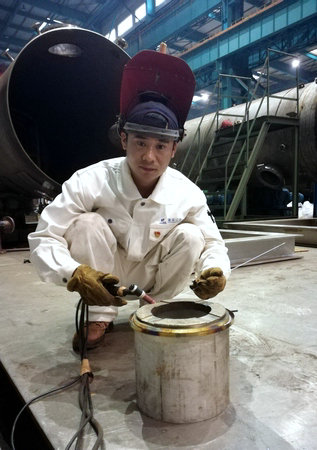 從一名技校生到秦皇島市杰出青年崗位能手,從秦皇島市金牌工人到秦皇島市建功立業職工標兵,從秦皇島市職工勞動模范到哈電集團優秀共產黨員,魏鵬七年的逐夢路上,與焊槍相伴前行。干一行,精一行。憑著這股鉆研勁兒,魏鵬很快掌握了手弧焊、MAG焊、TIG焊等多種焊接方法,平焊、立焊、橫焊、仰焊等各式焊姿樣樣精通,年輕的他更是包攬了工段的全部返修工作。魏鵬將“敬業、精益、專注、創新”的職業精神帶入到青年隊伍中,展現著新時代青年的風采。